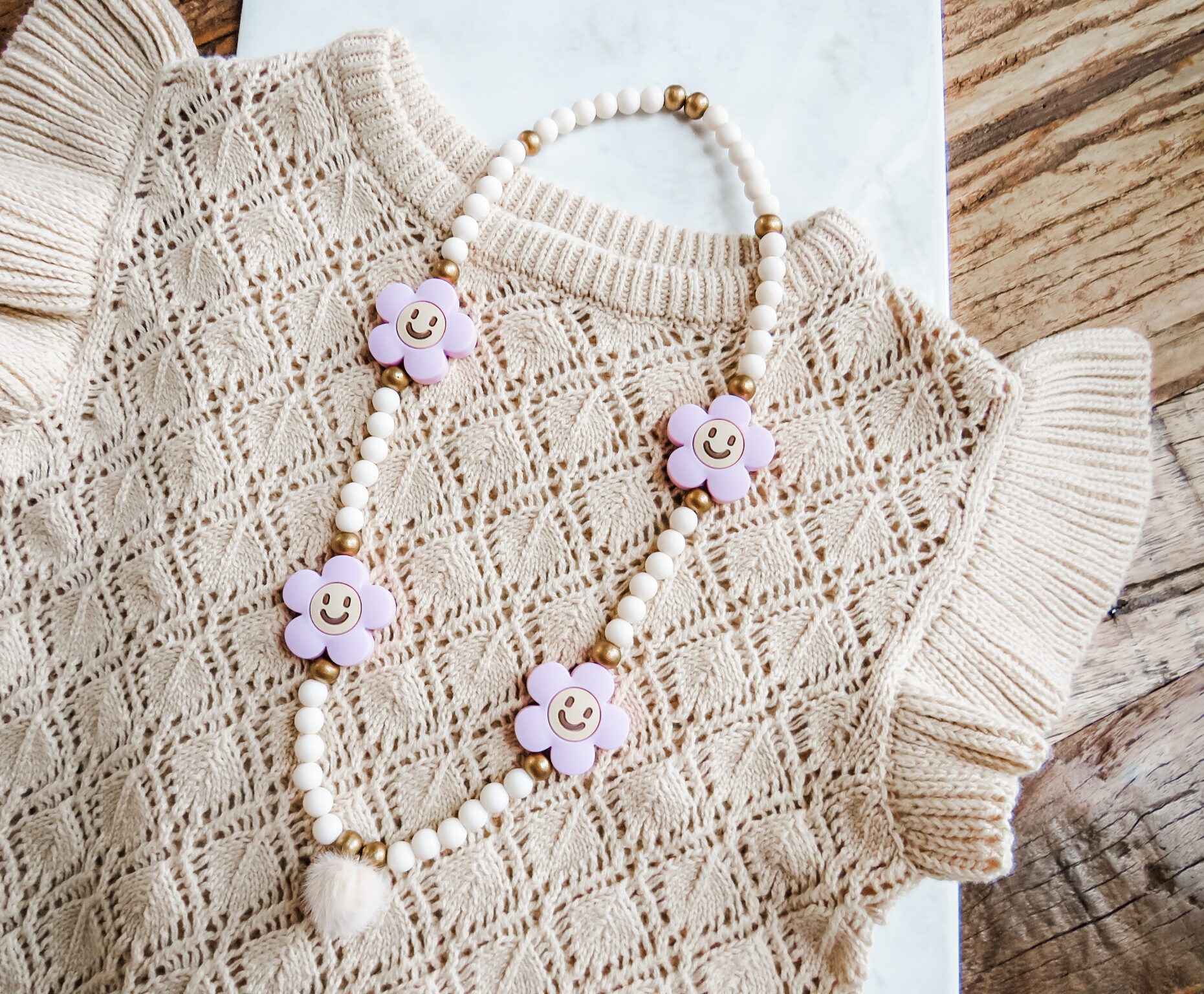superleuke kinderketting met lila smiley bedels